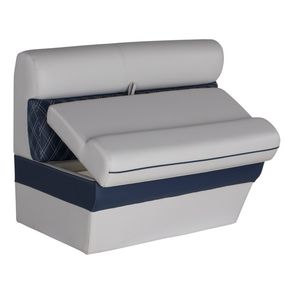 The Lippert Sunset collection angled pontoon bench seat, measuring 36" L x 28" W x 30" H, offers an easy aftermarket upgrade for refreshing your pontoons interior with modern styling, comfort, and durable storage options.