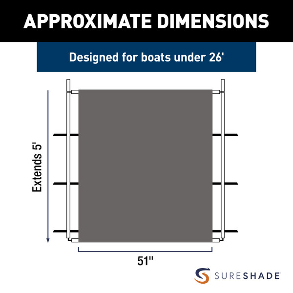 SureShade has designed a fully automated electric powered shade solution for boats under 26'. Ideal for T-Top or Hardtop models, shade is as easy as pushing a button. Available in four standard colors and widths, boaters can have the sun protection they need.