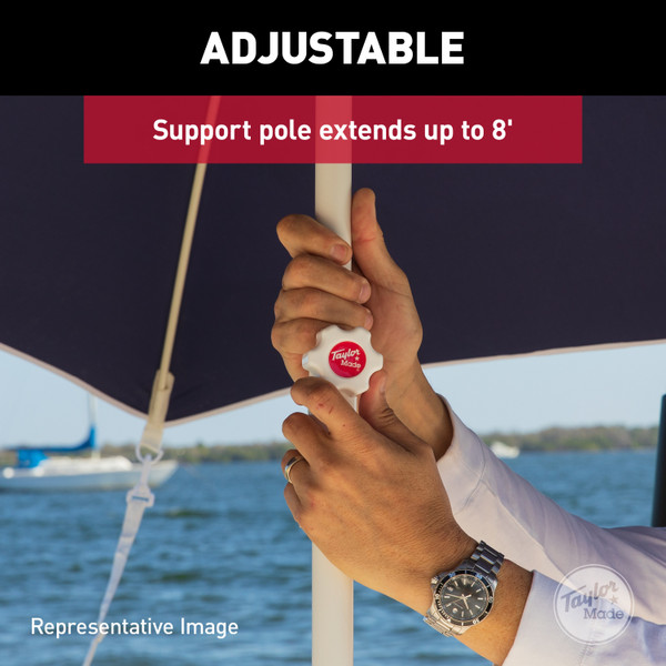 From the boat deck to the dock, the Taylor Made anchorshade has you covered. Compatible with almost any boat, this umbrella-style shade is designed for use while anchored in calm winds. The easy to use tie down straps and convenient carrying case make for a smooth transition from the boat to the sandbar.